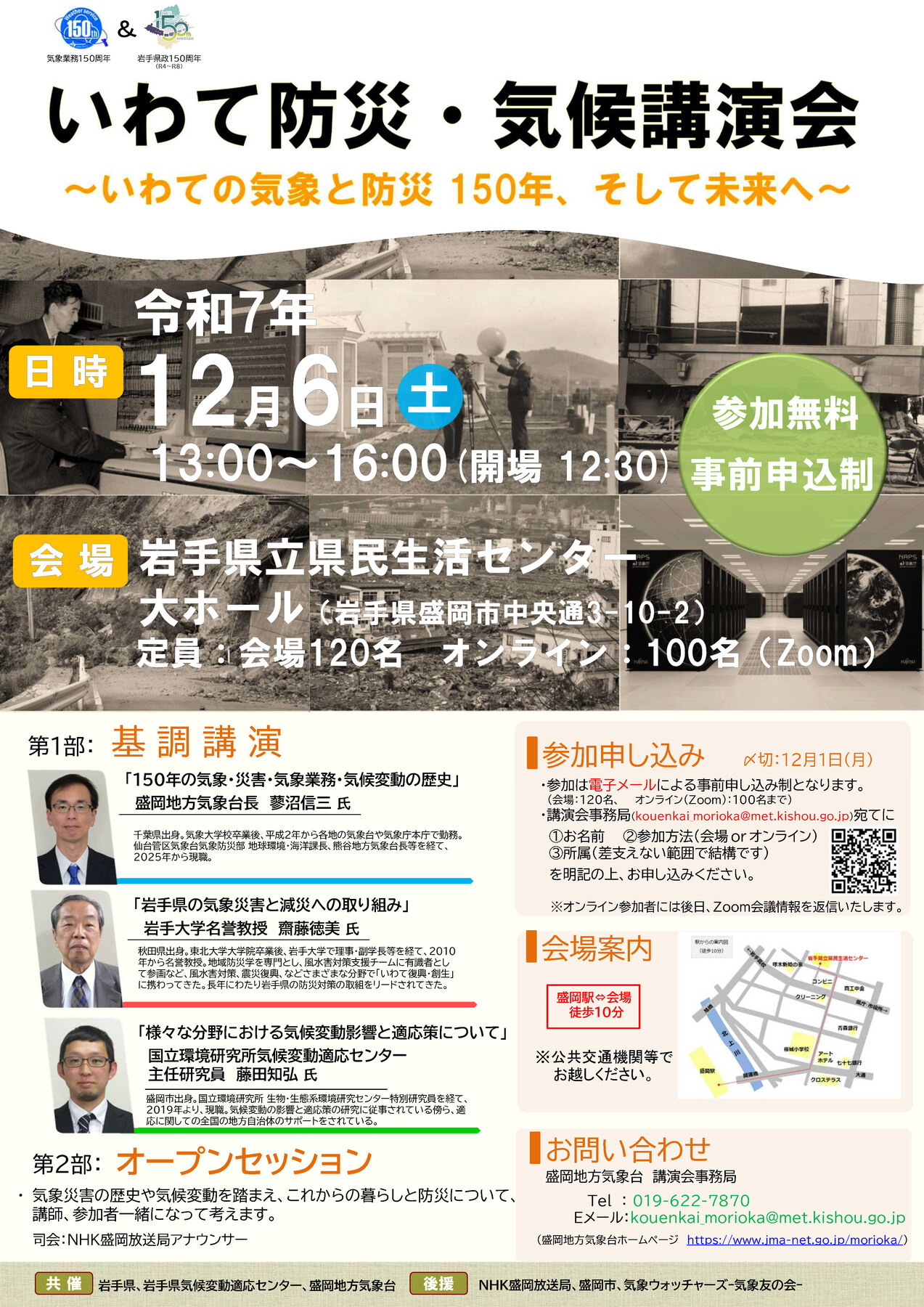講演Ⅰでは、気象業務開始から今年で150周年を記念し、岩手の気象災害を振り返りながら、